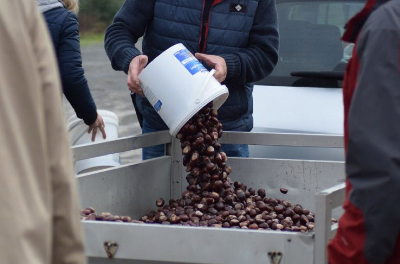 Die Organisation der jährlichen Kastaniensammlung, zu der viele fleißige Kinderhände beitragen, fällt ebenfalls in das Ressort dieser Gruppe. Der Erhalt der Streuobstwiese mit den Bäumen und dem Grasbewuchs ist für die Tiere wesentlich, um die Naturnähe zu gewährleisten. Wiederholt muss Grassamen ausgebracht werden. Um diese Arbeiten kümmert sich eine kleine Gruppe von engagierten Helfern, die auch weitere notwendige Maßnahmen verrichten. Hier seien beispielsweise erwähnt die Installation von Dachrinnen an der Scheune, der Einbau eine Heizvorrichtung an der Wasserzufuhr, um das Einfrieren im Winter zu vermeiden, oder diverse Streicharbeiten.